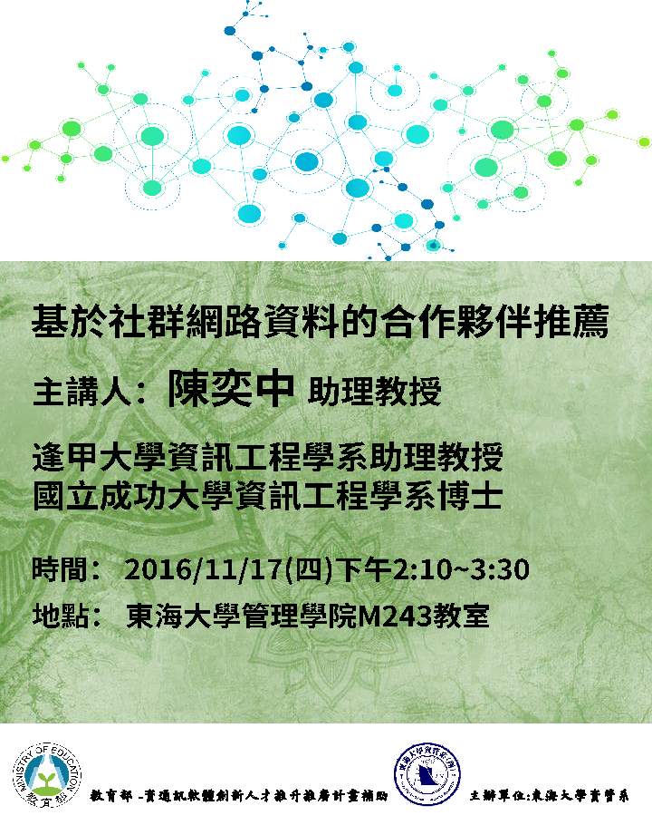 11月17日(四)東海資管系專題演講