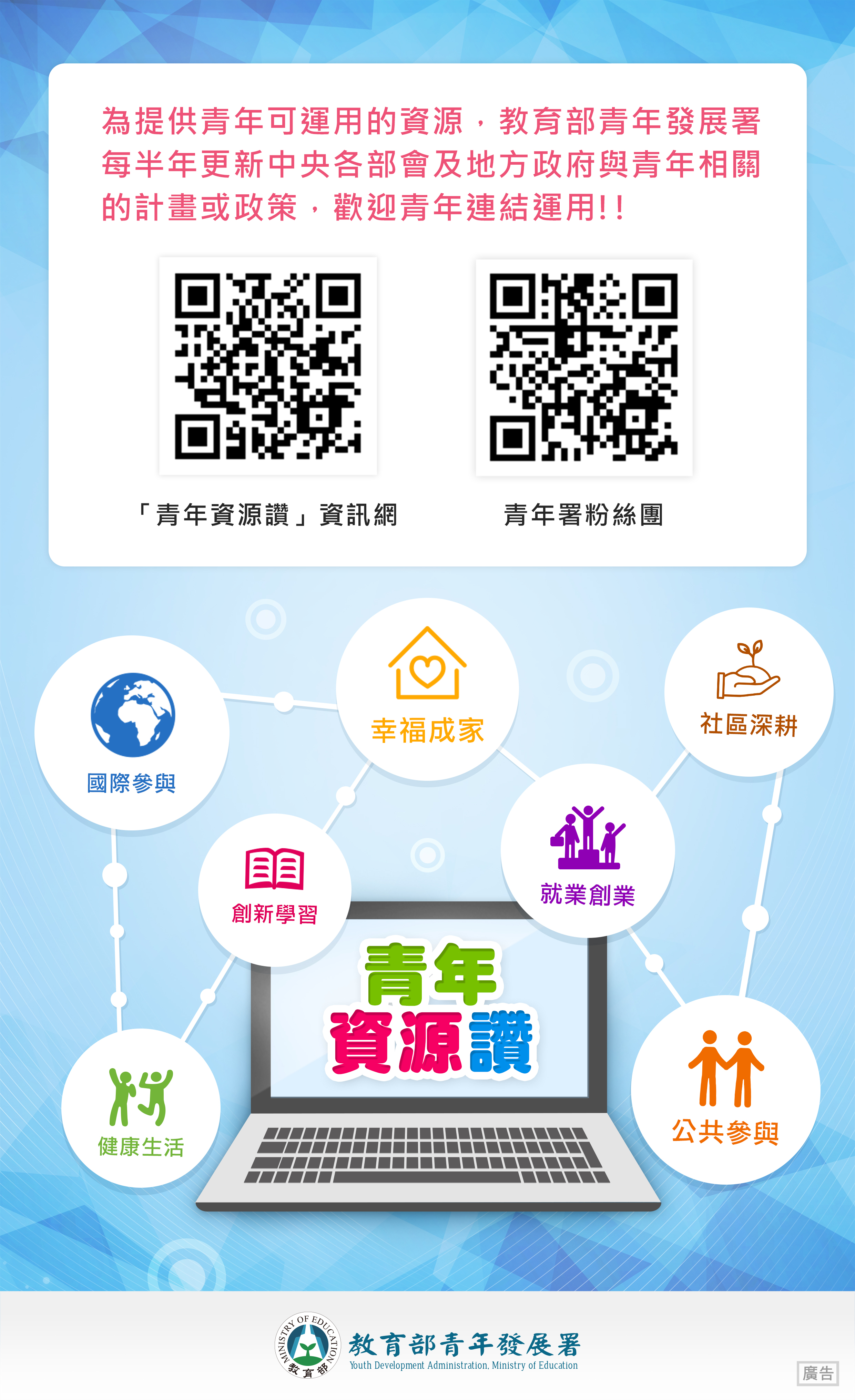 教育部青年發展署所建置「青年資源讚」資訊網頁已全面更新,期望讓青年學子能快速且完整的取得相關資訊,並能加以運用。