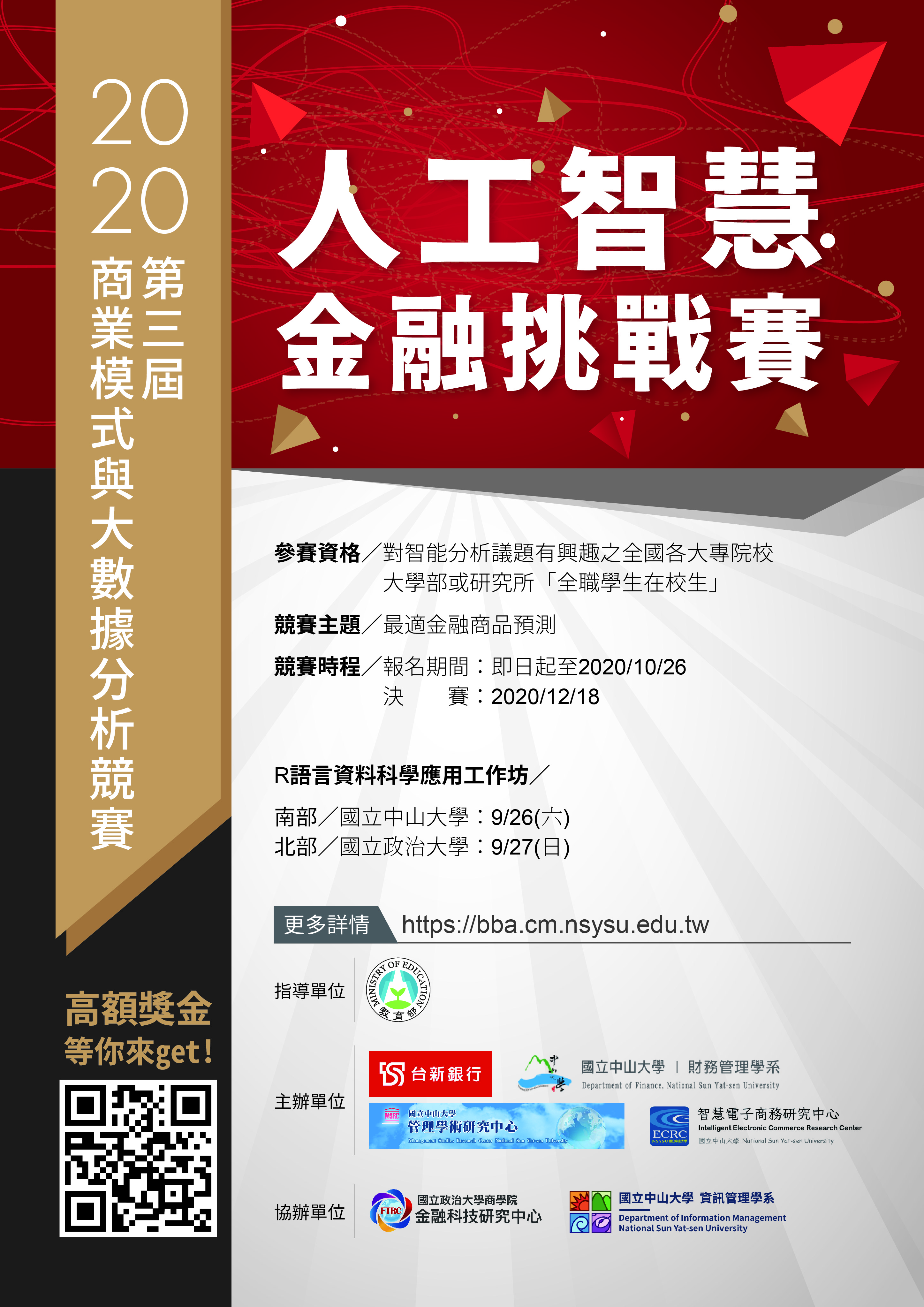 台新銀行與本校財務管理學系合作舉辦之「第三屆商業模式與大數據分析競賽 人工智慧金融挑戰賽」資訊。