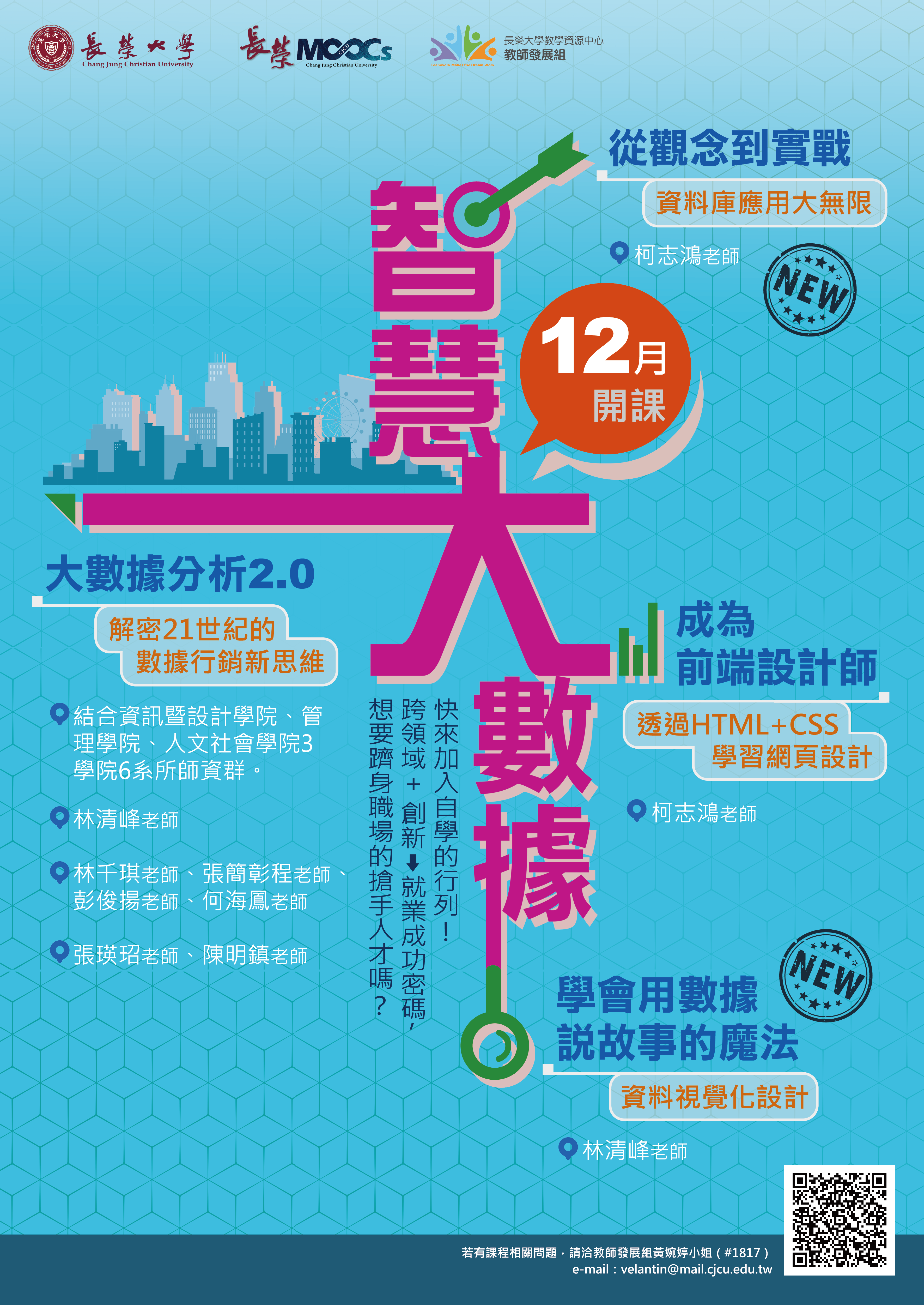 長榮大學開設2門磨課師(MOOCs)線上課程「從觀念到實戰:資料庫應用大無限」、「學會用數據說故事的魔法:資料視覺化設計」即日起開放線上報名。