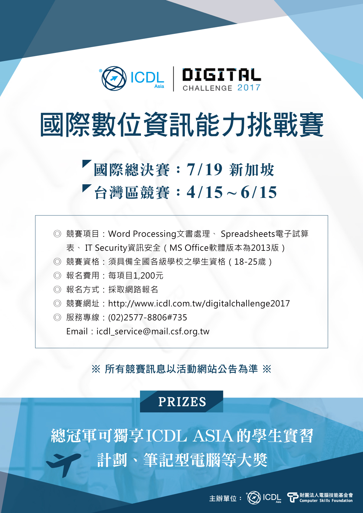財團法人中華民國電腦技能基金會有關「2017 ICDL國際數位資訊能力挑戰賽」