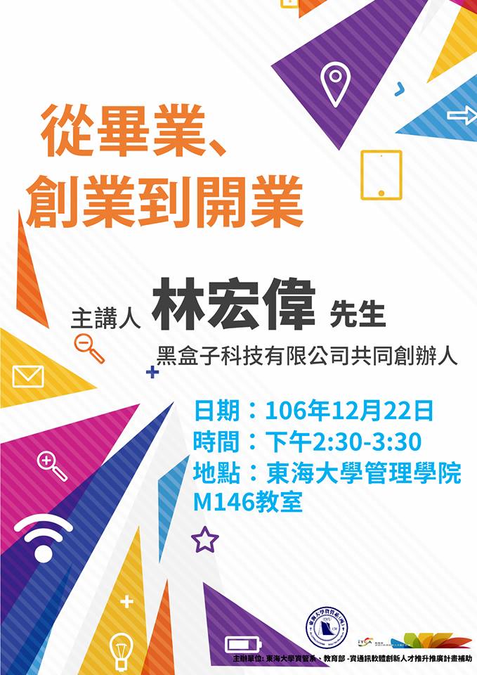 【創意與創新專題演講公告】12月22日(五) 從畢業、創業到開業