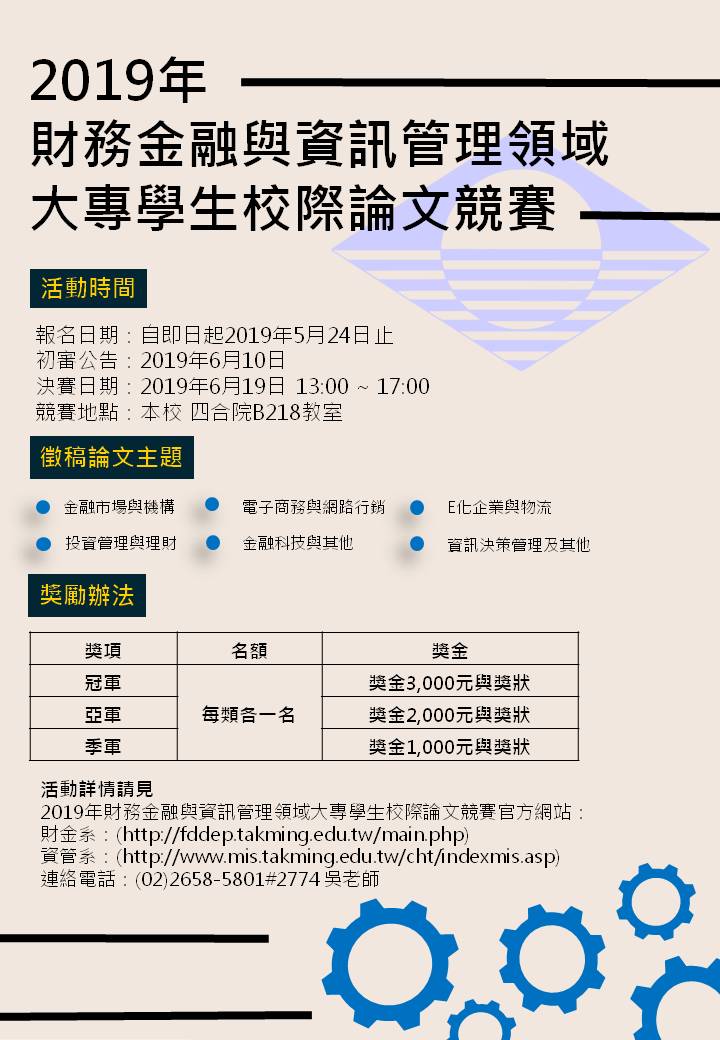 2019年財務金融與資訊管理領域大專學生校際論文競賽