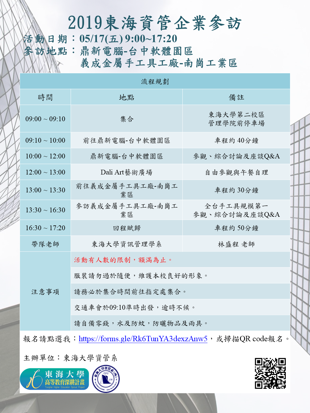 5/17資管系企業參訪開放報名中
