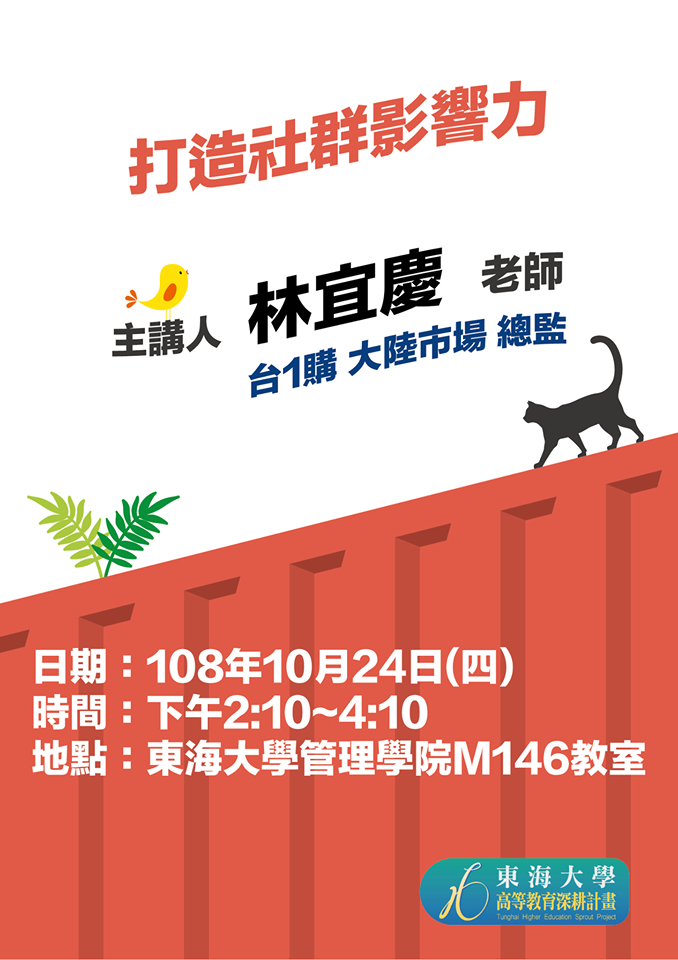 【專題演講公告】108年10月24日(四)